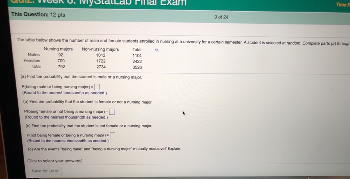 Solved Time F This Question 12 Pts 9 Of 24 The Table Bel Chegg Com
