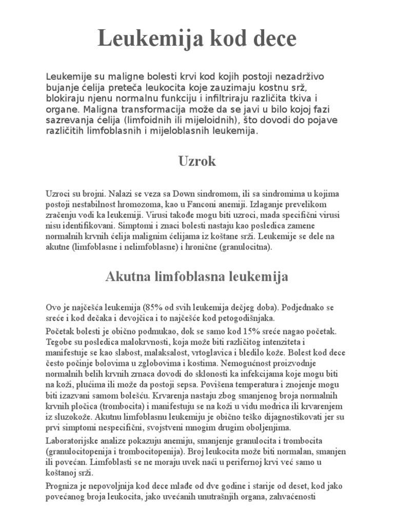 Leukemija Kod Dece