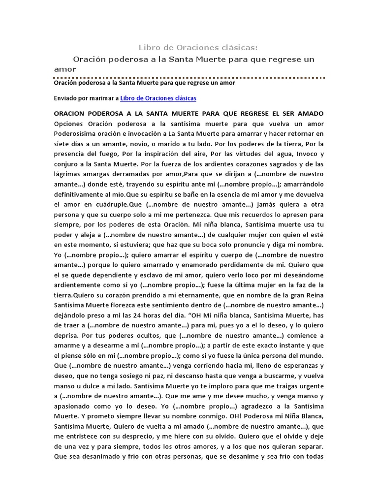 Oracion A La Santa Muerte Para El Amor Imposible Pdf