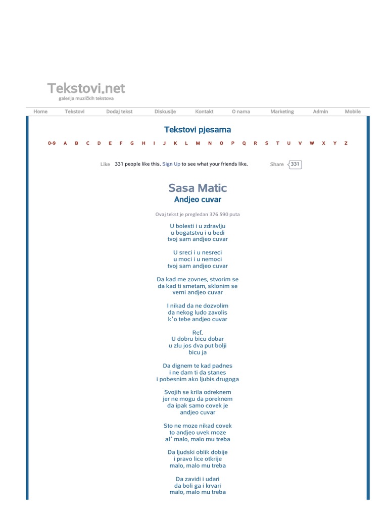 Tekstovi Net Sasa Matic Andjeo Cuvar