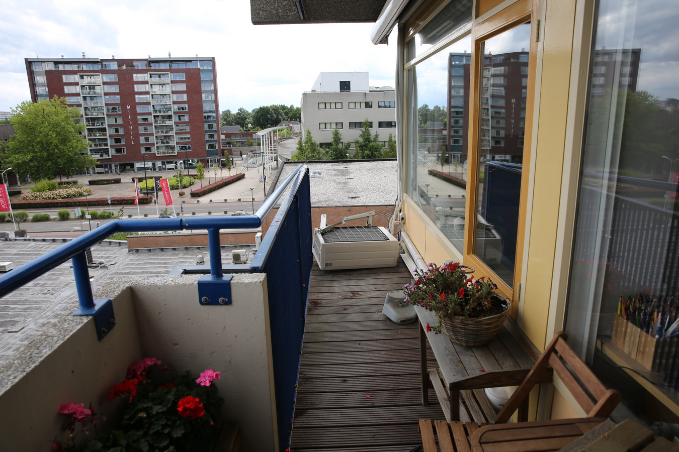 Blick vom wohnzimmer und balkon eines apartments aus. Views of the living room and terrace of one apartment. A gallery that projects over the main floor in a theater or auditorium. The balkonbar dutch for balcony bar is a unique social and sustainable product made in holland which allows you to really make the most of your balcony by turning it into a bar.