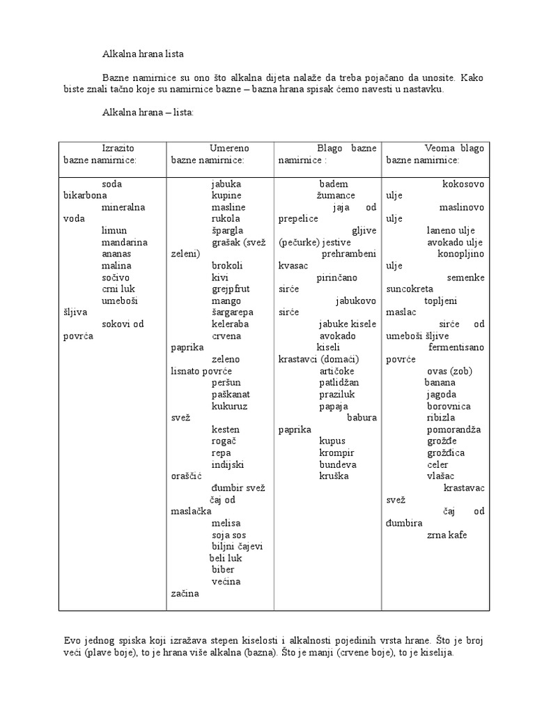 Alkalna Hrana Lista