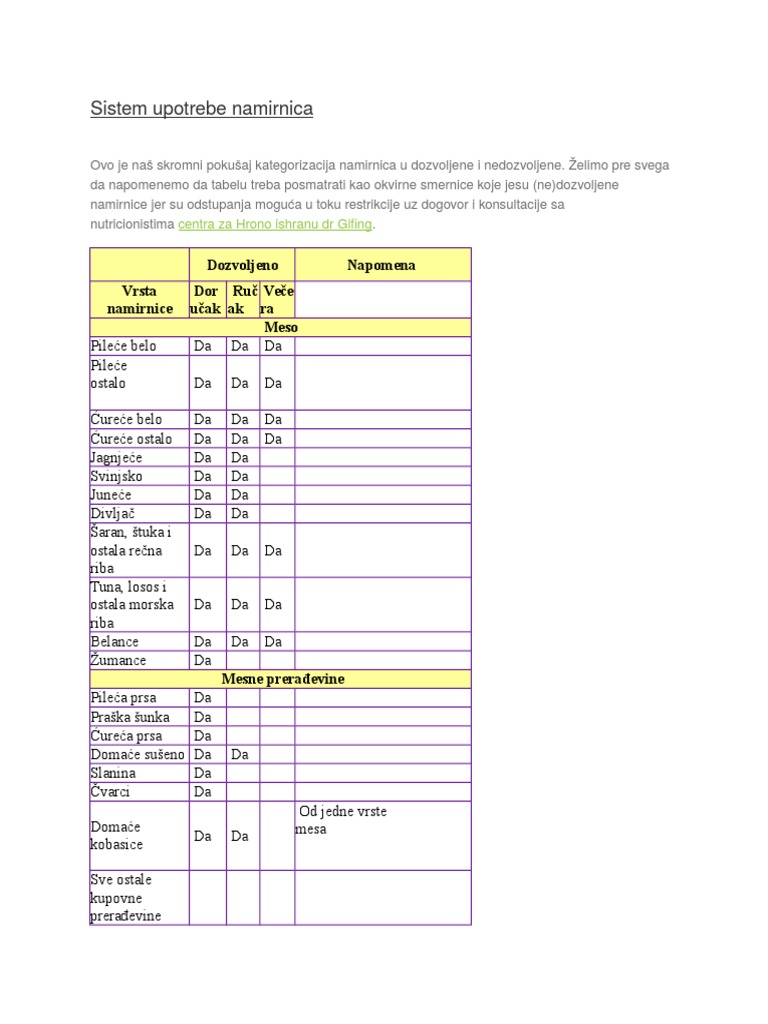 Sistem Upotrebe Namirnica