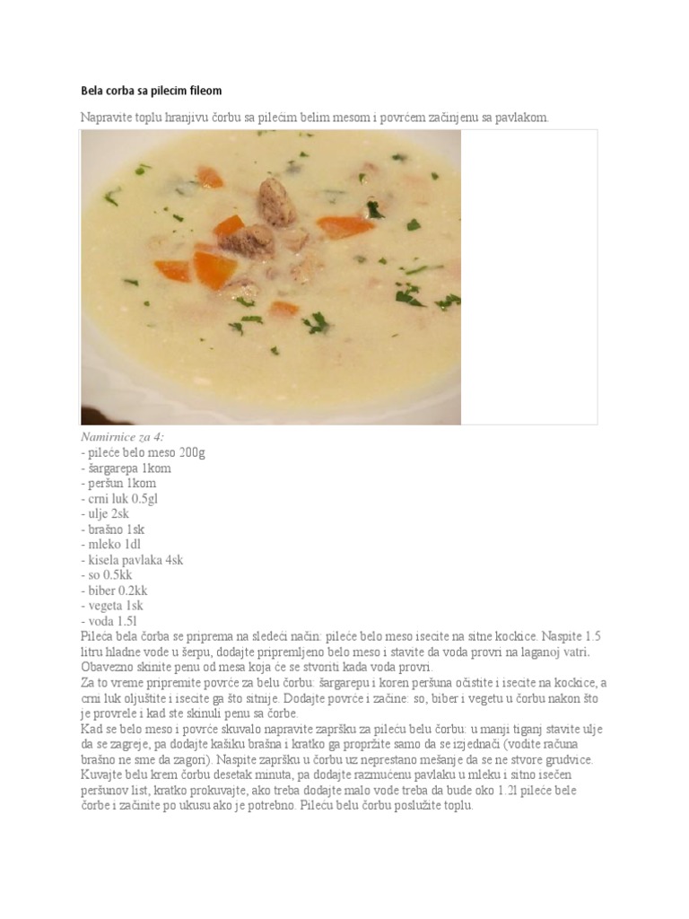 Bela Corba Sa Pilecim Fileom Namirnice Za 4