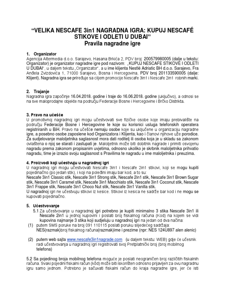 Velika Nescafe 3in1 Nagradna Igra Kupuj Nescafe Stikove I Odleti U Dubai Pravila Nagradne Igre