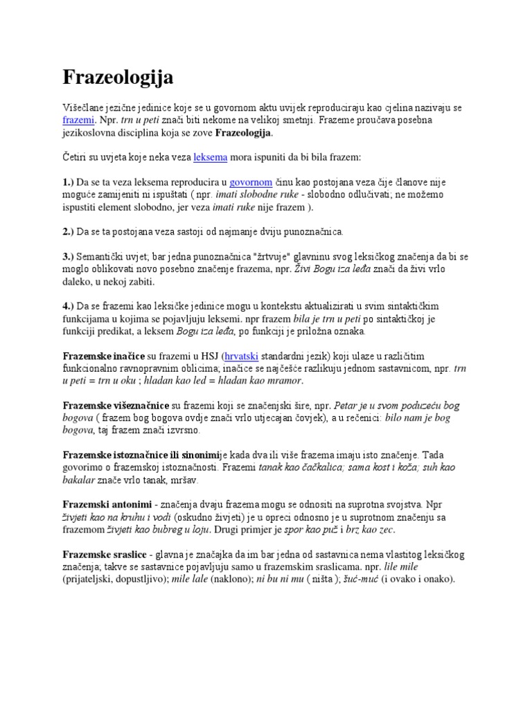 Leksik Frazemi U Hrvatskome Jeziku Drzavna Matura Na Dlanu