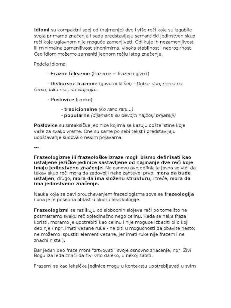 Frazeologija I Frazemi By Martina Marjanovic