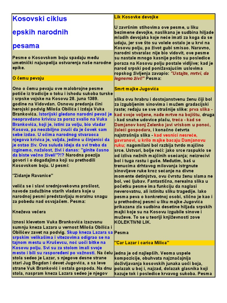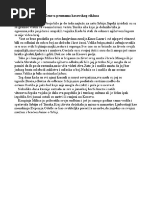 Razred Za 1 2 3 4 5 6 7 8 9 Razred Osnovne Skole I Srednje Skole Car Lazar I Carica Milica Analiza Pesme