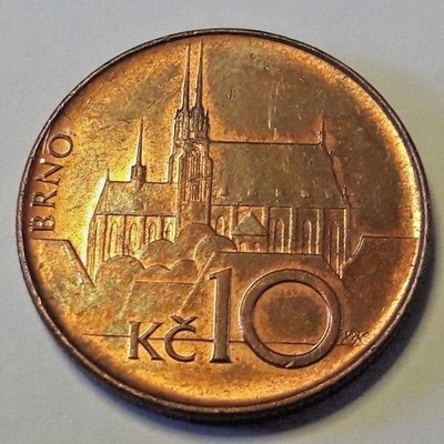 Coin 10 Korun Brno Cathedral Czech Republic 1993 Today Circulation Wcc Km4