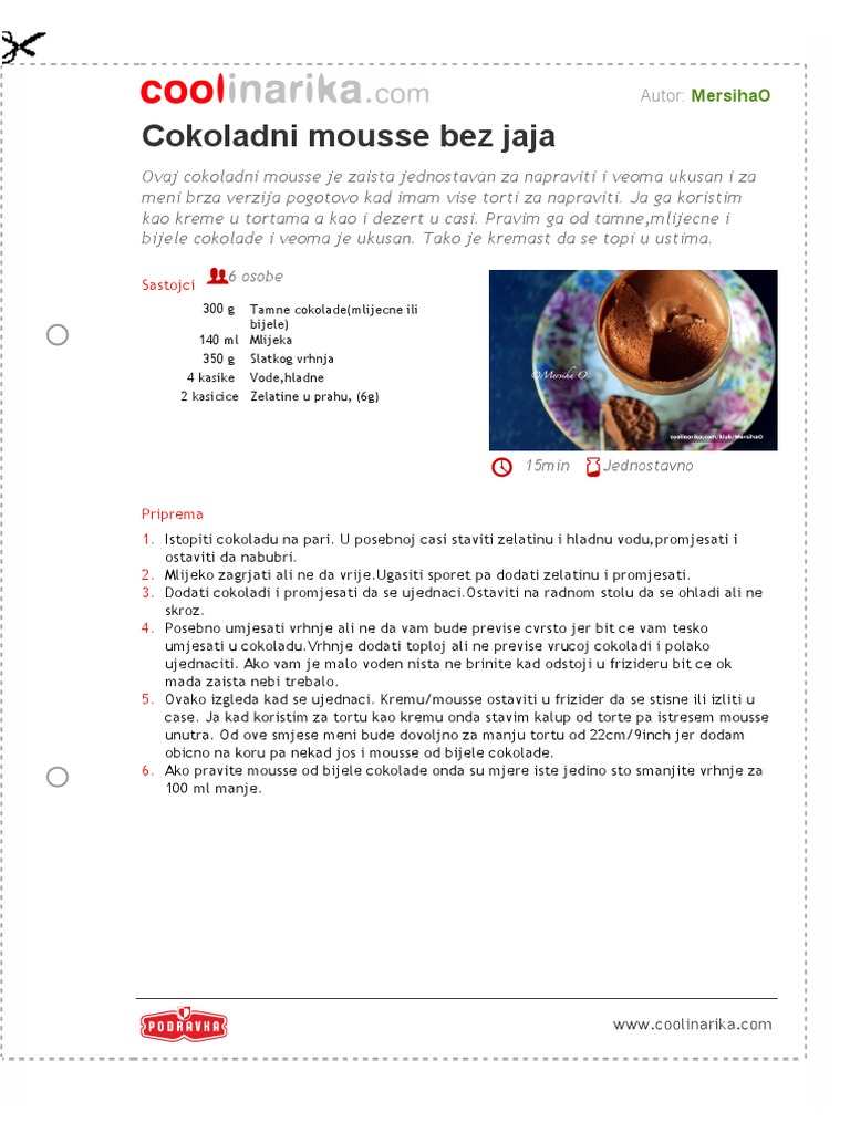 Cokoladni Mus Bez Jaja