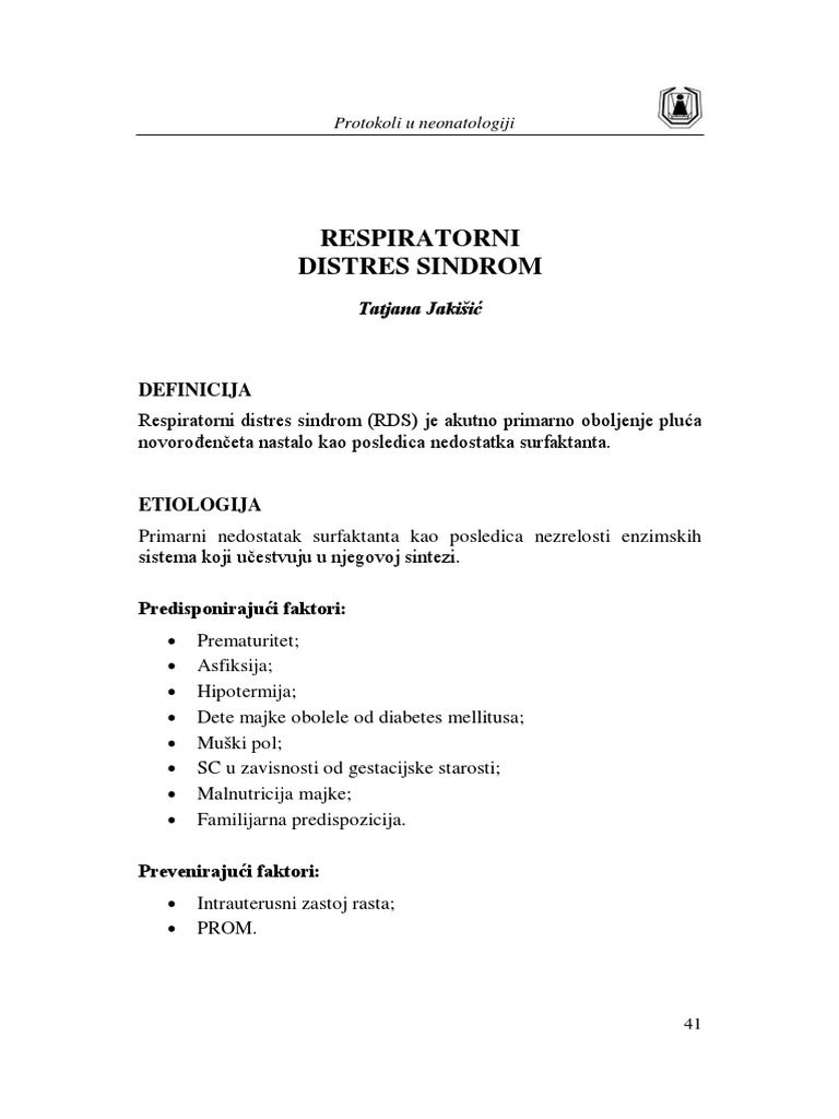 Respiratorni Distres Sindrom Novorođenceta Zdravlje