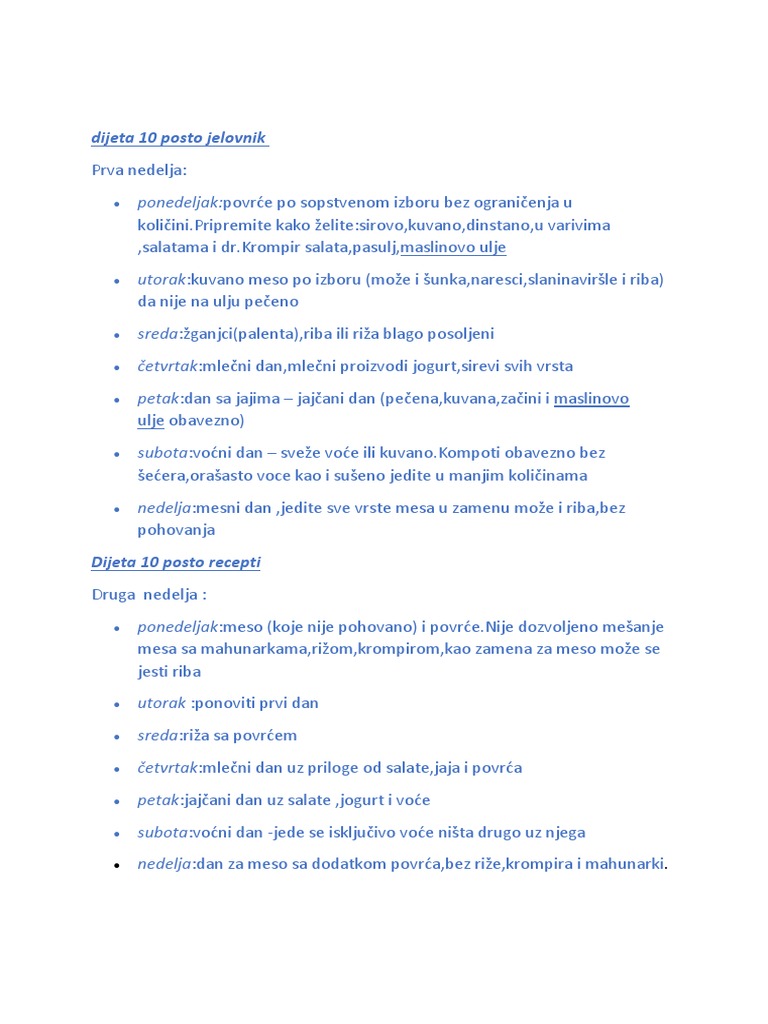 Dijeta 10 Posto Jelovnik Iskustva Recepti Rezultati