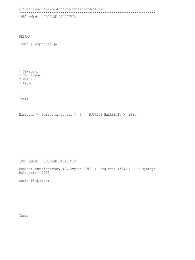 Djordje Balasevic Tekstovi Pjesama Hitovi Ba